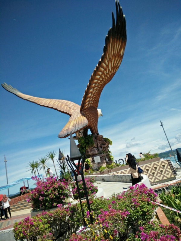 紧接着,我们又去了海边占地面积很大的广场——巨鹰广场,广场上矗立着被称为兰卡威新地标的鹰塔(Dataran Lang),鹰塔也就是兰卡威的标志。老鹰站在石塔上,张开着巨大的翅膀,桀骜不驯的傲然姿态,仿佛下一秒便要冲上云霄,展翅翱翔,令人震撼。巨鹰那凛冽傲然的姿态,象征着兰卡威就象展翅高飞的老鹰一样,未来的经济更加蓬勃发展。因此这座广场受到当地人的极力敬仰和爱护。广场周围有宁静的湖泊、美丽的喷泉还有富有诗意的小桥等,置身其中,仿佛进入一个难以言喻的静谧境地,令人神往。